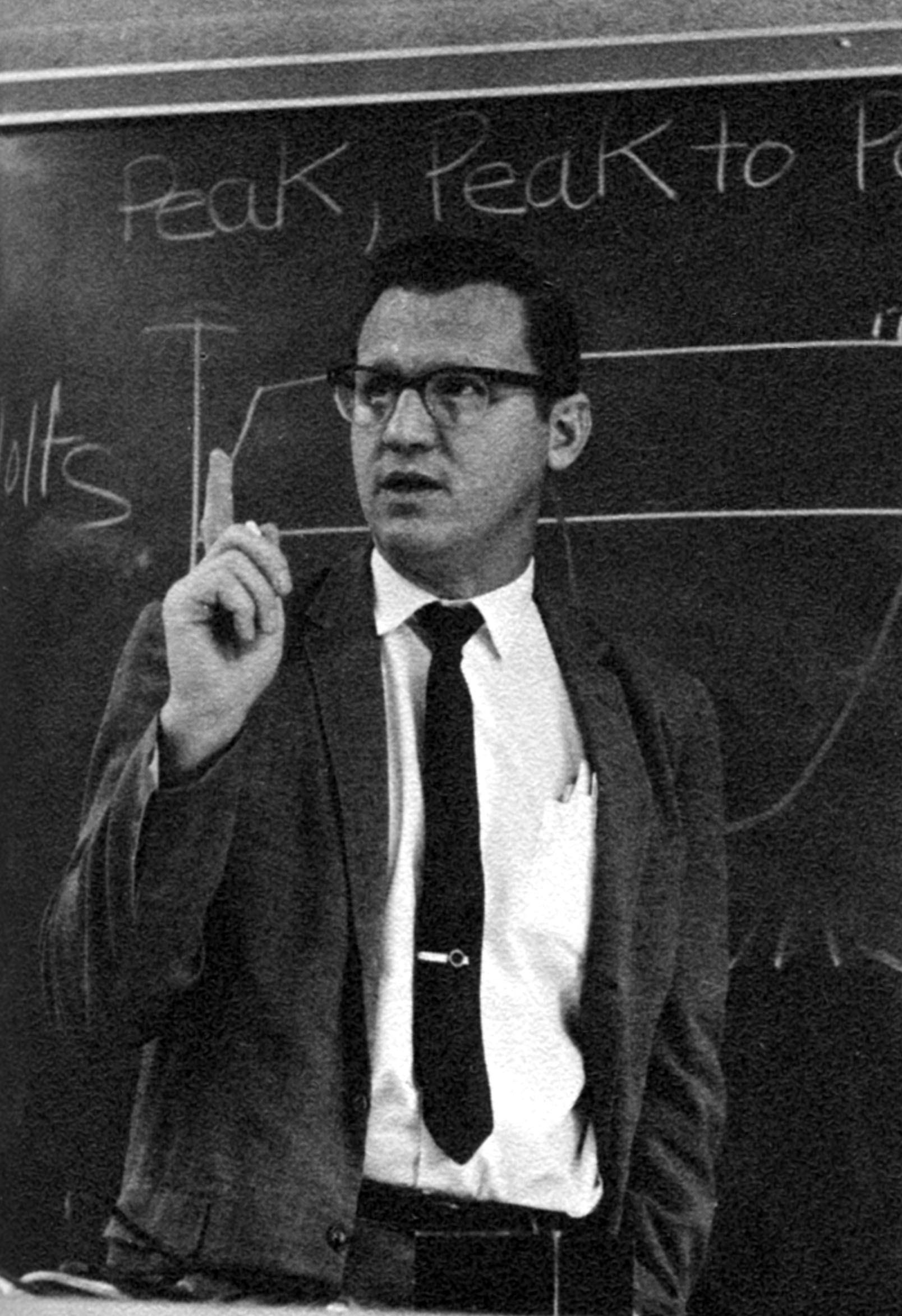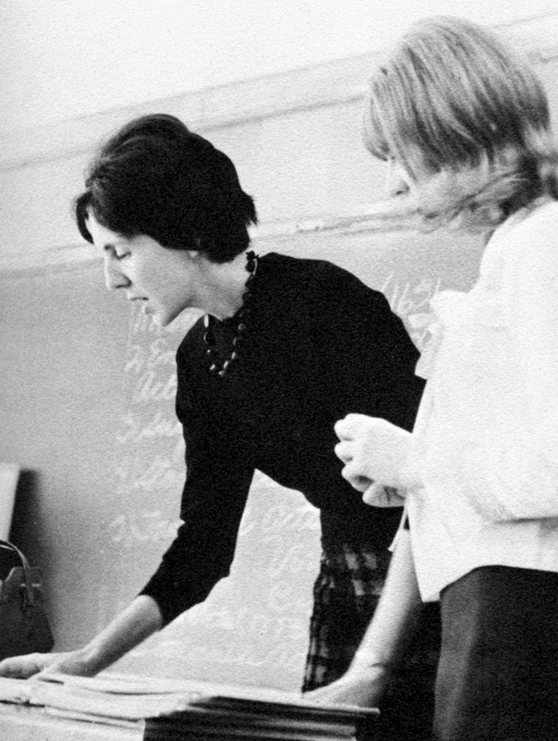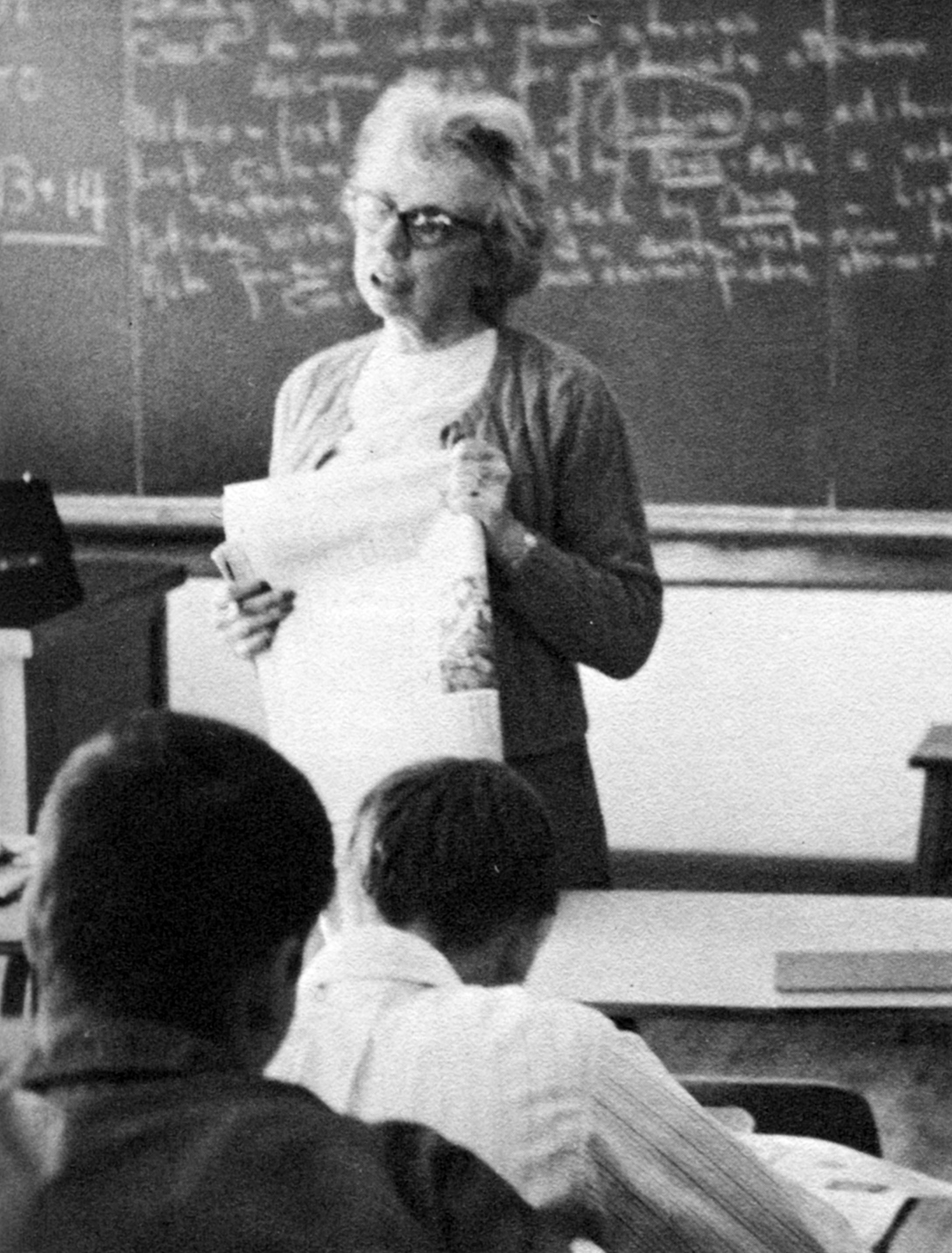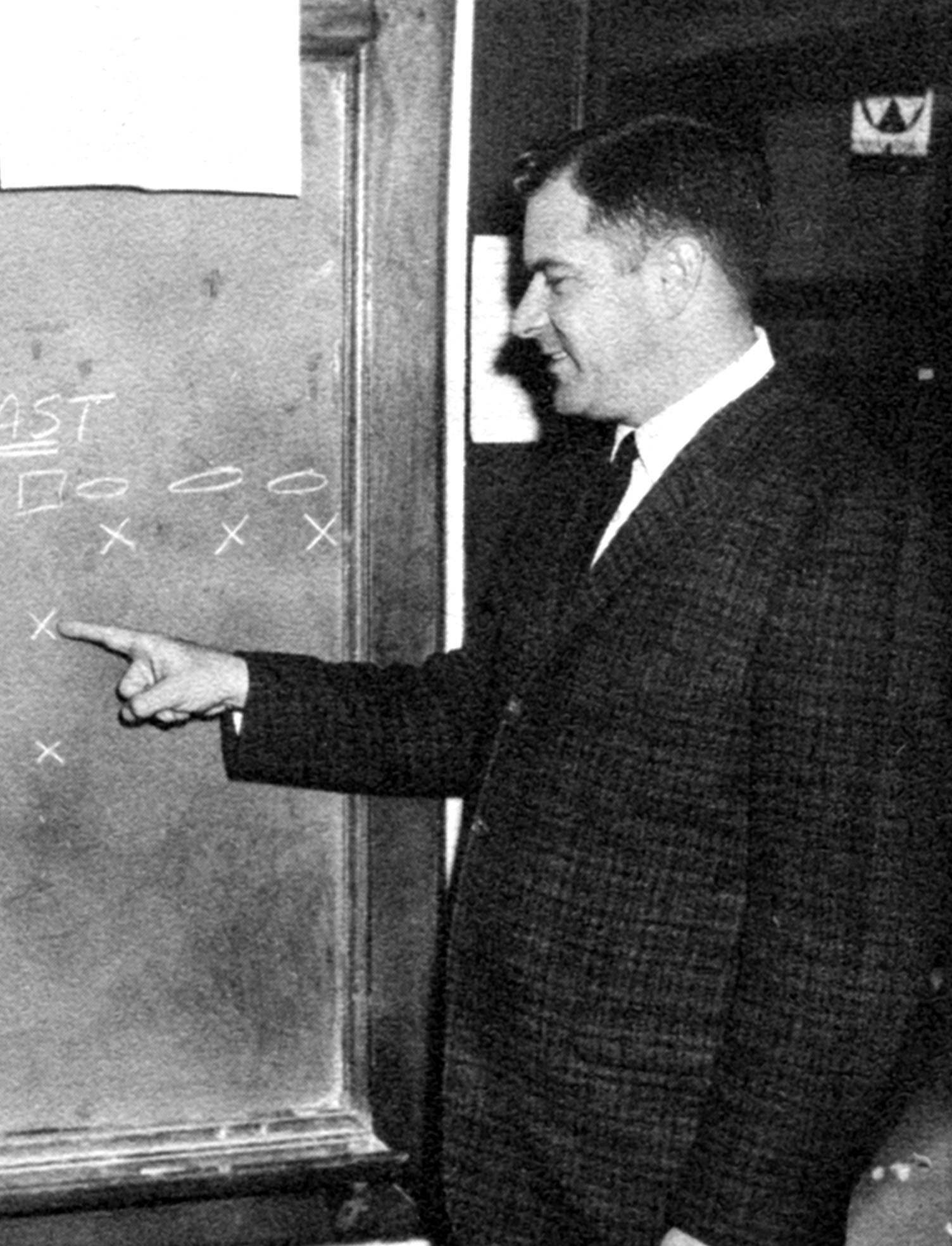 After opening with a slide showing the old school as we knew it, the first image was of our wonderful principal, Mr. Mac. As I'd hoped, people talked about what he meant to us, the students he so wisely and kindly guided. The following images showed Miss Cooper (remember the smell of those mimeographs?), Miss McAndless conducting one of her classes, phys-ed teacher Miss Drake sitting on the edge of the pool, Miss North explaining the mysteries of shorthand, Miss Rankin showing Charlotte how to be a math teacher, Miss Fraser teaching us the language we use every day, Mr. Dodd the charismatic art teacher (note Gail and Sally in the background), Mr. Gosseaux the non-charismatic chemistry teacher, Mr. Milske the excellent biology teacher, Coach Dornbos the swimming coach, Mr. Francis one of our shop teachers, Mr. Brumbaugh who taught the oh-so-important driver's ed, Mrs. Sundquist music teacher and mother of classmate Julie, Coach Saunders, the football coach, and the final teacher in the slide show, the iconic Coach A.D. Walker.