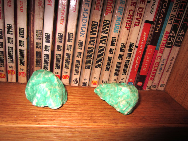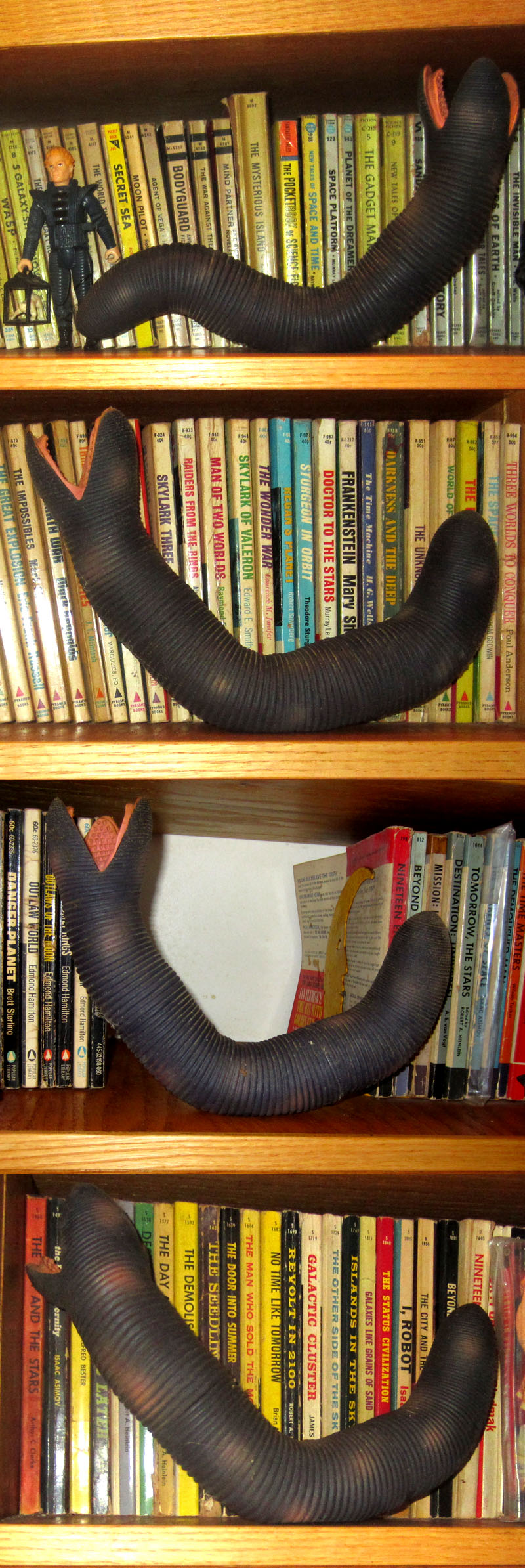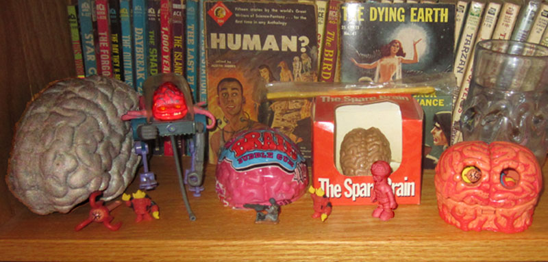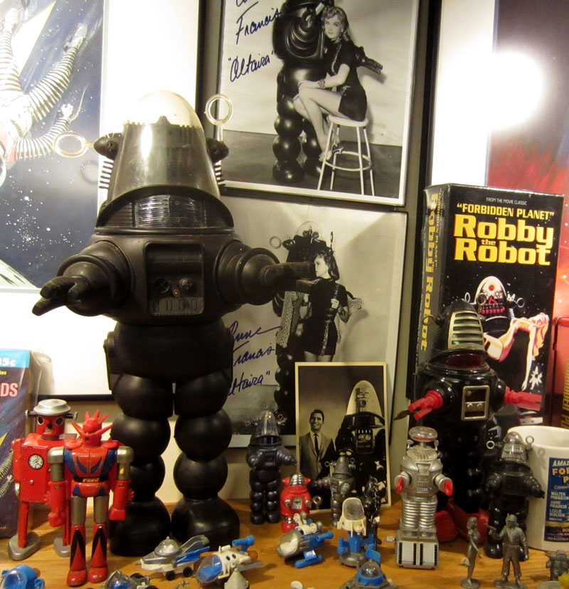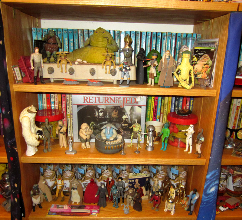 To help me return the room to man-cave status, Mary, the saint, did what she's done more than a few times over the past 20-odd years: she dusted every single one of the hundreds of tiny space-shuttles, flying saucers, aliens, super-heroes, Star Wars figurines, ray guns, sand worms of Arrakis, rocket ships, moon globes, robots, space brains, Godzillas, moon rocks, pieces of Kryptonite, and even the mechanical arm that grasps my two graduation tassels. What a trooper! By now she's touched my toys more times than I ever have. She's even learned which of the toys belong together. However, more than once during that week Mary said, "Don't you go and die and leave me with all this crap!"