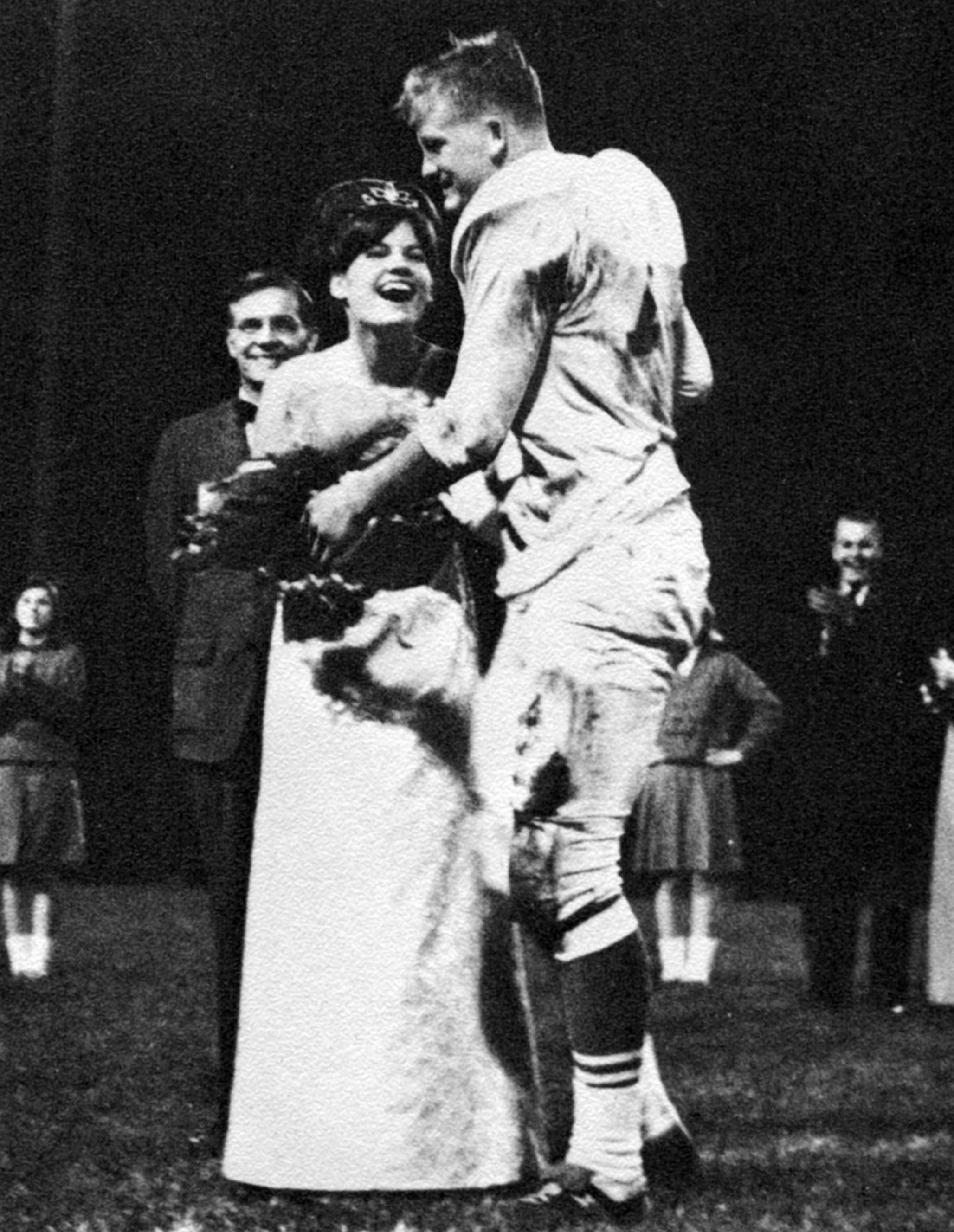 The final photo is my favorite photo in the yearbook: the just-crowned Homecoming Queen Charlotte with Homecoming King, Dave, in his football uniform on the field at halftime. Charlotte's Dad is watching proudly from the background. That photo looks like it came from the happy ending of a feel-good movie.